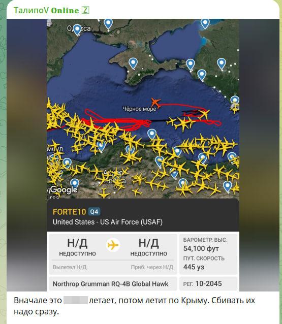 Незадолго до начала атаки недалеко от Крыма на мониторинговых ресурсах можно было заметить американские самолёты, кружившие над акваторией Чёрного моря.