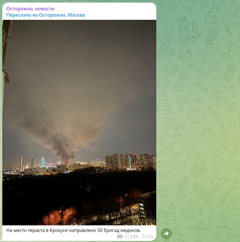 О том, как люди выбирались из здания, рассказал депутат, а также поделился музыкант группы "Пикник". Информация о пострадавших ужасающая: около 40 погибших, более 100 раненых.
