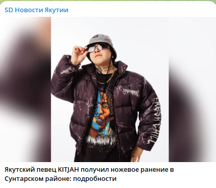 Якутский певец KITJAH доставлен в Центральную районную больницу Сунтара с ножевым ранением. Об этом стало известно 25 марта. Инцидент с участием известного исполнителя произошёл ночью, когда он распивал спиртные напитки с друзьями в арендованном гостевом доме.
