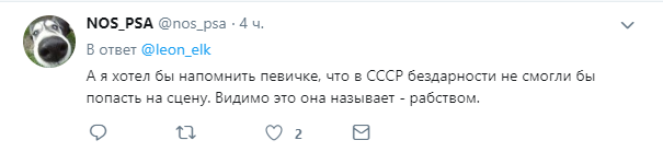 "А я хотел бы напомнить певичке, что в СССР бездарности не смогли бы попасть на сцену. Видимо, это она называет рабством", - резюмировали в Сети.