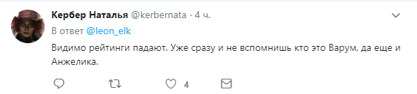 "Видимо, рейтинги падают. Уже сразу и не вспомнишь, кто это - Варум, да ещё и Анжелика", - считает другой.