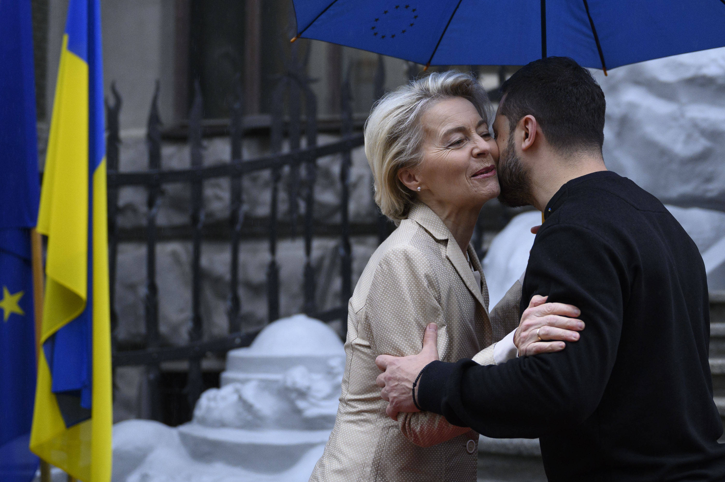 Поцелуй от Урсулы - да, деньги - нет. Фото: © IMAGO/Presidential Office of Ukr www.imago-images.de/Globallookpress.