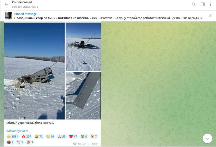 Так, неизвестный украинский военный написал на нём "Горячий привет Липецкому металлургическому комбинату".