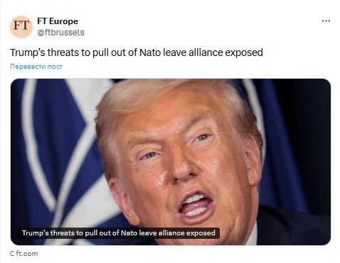 Но и на этом плохие новости для Европы и Украины не закончились. Представитель США при НАТО Мэттью Уитакер в эфире канала Newsmax заявил, что Дональд Трамп нацелен пересмотреть всё, что связывает Америку с НАТО.