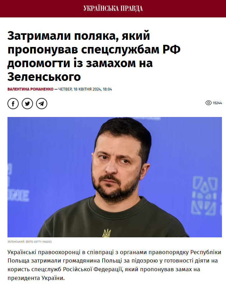 Как отмечается в сообщении, о возможном совершении уголовного преступления украинские прокуроры и сотрудники СБУ сообщили польским коллегам и передали им ключевые доказательства по этому делу в рамках оказания международно-правовой помощи. То есть, по логике украинских СМИ, силовики Незалежной активно мониторят не только своих граждан, но ещё у них хватает сил и ресурсов на соседей, причём из страны НАТО. Всё это очень странно.