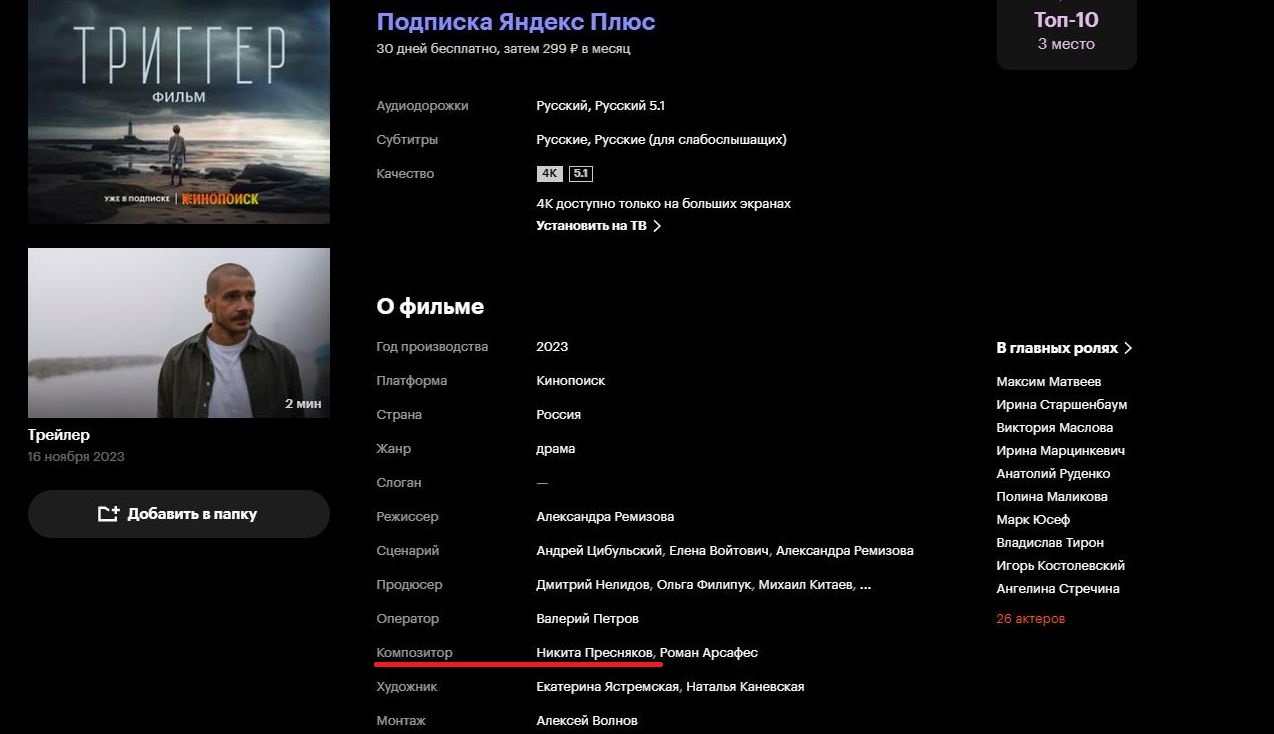 И тут благодаря тем самым социальным сетям оказывается, что не всё так плохо у Никиты Владимировича в Штатах. Есть луч света в безденежном царстве, похвастался перед своими подписчиками Пресняков. И сообщил, что в России в прокат вышел фильм "Триггер", соавтором музыки к которому он и является.