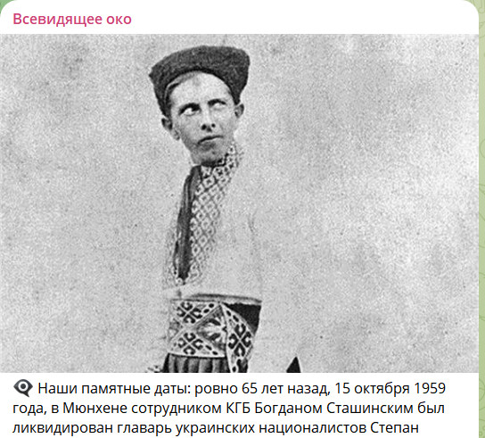 Ровно 65 лет назад, 15 октября 1959 года, советские спецслужбы ликвидировали в Мюнхене скрывавшегося от правосудия коллаборациониста Степана Бандеру. В этот день в одну из мюнхенских больниц был доставлен мёртвый человек с травмой черепа. По документам он значился как Штефан Попель, гражданин ФРГ. Подозрения врачей вызвал найденный у покойника пистолет. Следствие быстро установило, что под именем Попеля скрывался Стефан (Степан) Бандера.