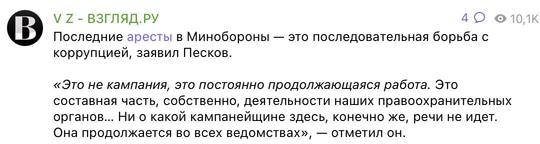 Да и тут важно, наверное, было делать так, чтобы не поломать то, что нельзя ломать. То есть чтобы это не повлекло какого-то дисбаланса в управлении войсками, не повлекло нарушение фронта. Это очень деликатная вещь. Представьте, когда у вас идёт специальная военная операция, вы проводите внутренние операции против коррупционеров. Тут очень осторожно нужно было действовать, и хорошо, что это так было сделано, а не иначе,