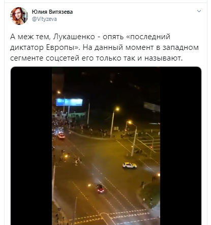 Это заметили многие российские СМИ. Российская журналистка Юлия Витязева в своём Твиттере написала: "А меж тем Лукашенко - опять "последний диктатор Европы". На данный момент в западном сегменте соцсетей его только так и называют."