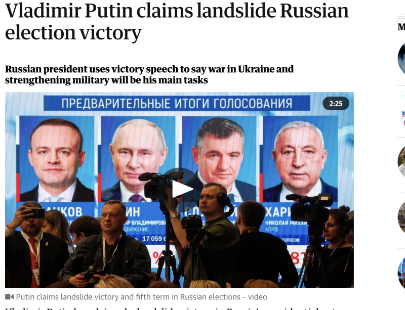 Австрийская газета eXXpress подчеркнула популярность действующего президента России, отметив, что по итогам голосования Путин получил чуть менее 88% голосов, что стало рекордным результатом и на десять процентных пунктов больше, чем на выборах 2018 года.