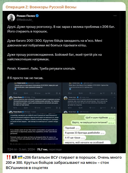 - сообщает "ветеран" ВСУ Роман Пелех.