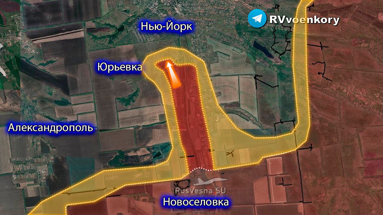 Ранее стало известно, что русские штурмовики уверенно продвигаются с боями с юга к центру Нью-Йорка. Последнее продвижение составило почти 3 километра вглубь посёлка. Это признают в том числе и вражеские ресурсы.