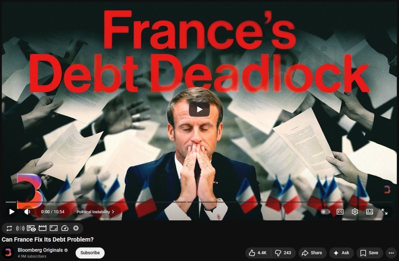 Речь идёт про видеоэссе под названием "Сможет ли Франция решить свою долговую проблему?". Для создания материала агентство привлекло старшую экономистку финансового гиганта ING Шарлотту де Монтпейе и двух собственных колумнистов, специализирующихся на европейских финансах. И их выводы неутешительны.