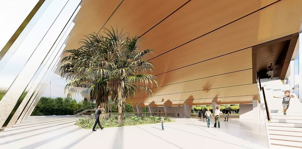 Перед зданием разместят искусственные водоемы с переходным мостом.