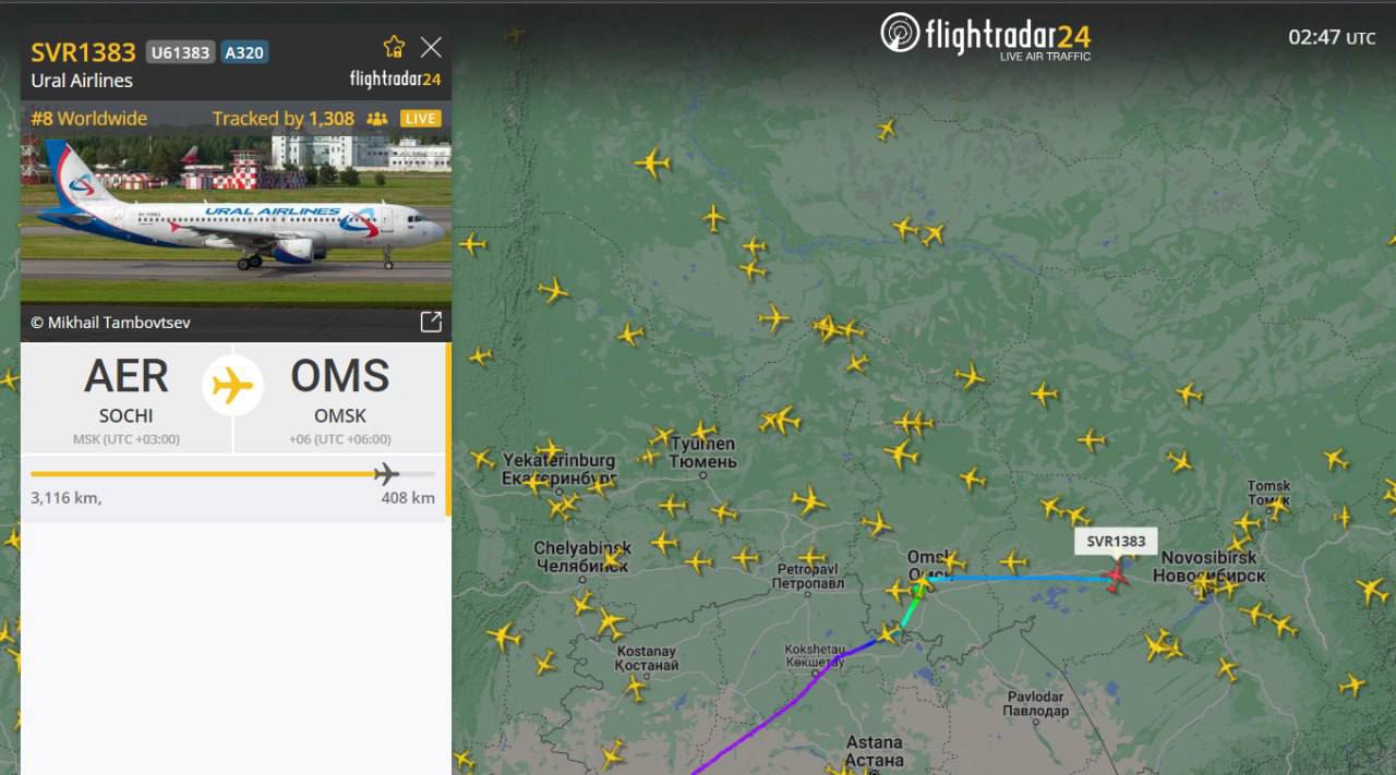 Губернатор Новосибирской области Андрей Травников у себя в телеграм-канале дал чуть более подробную информацию о случившемся. По его данным, "сегодня в 09:44 в Новосибирской области самолёт "Уральских авиалиний", летевший из Сочи в Омск, совершил экстренную посадку на грунт в сельской местности". Он также подтверждает, что на борту в момент инцидента находились 159 пассажиров, в том числе 23 ребёнка.