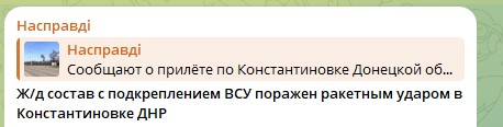 Позже источник уточнил о поражении ракетным ударом железнодорожного состава с подкреплением ВСУ.