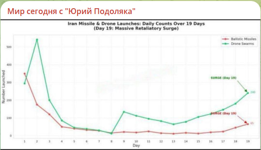 Кроме прочего, была опубликована статистика применения Ираном ракет и БПЛА в войне против Израиля, США и всей "коалиции Эпштейна". О чём же она говорит?