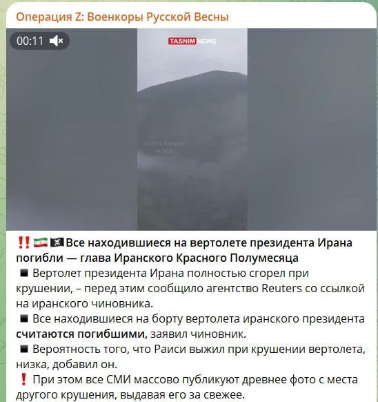 О гибели президента Раиси ранее сообщили американские таблоиды, задолго до завершения поисково-спасательной операции.