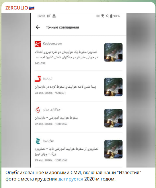 В то же время ряд крупнейших СМИ опубликовали фотографию якобы с места крушения, однако, как стало известно, сама фотография датируется 2020 годом.
