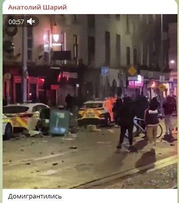 В центре Дублина накануне начались массовые беспорядки и столкновения с полицией и спецназом после того, как неизвестный напал с ножом на детей недалеко от школы. Всё началось с того, что 50-летний мигрант из Алжира исполосовал ножом семью из пяти человек. Нападение произошло рядом со школой для девочек. Мать и дочь получили рваные раны, они обе в тяжёлом состоянии. Ещё двое детей получили раны средней степени тяжести.