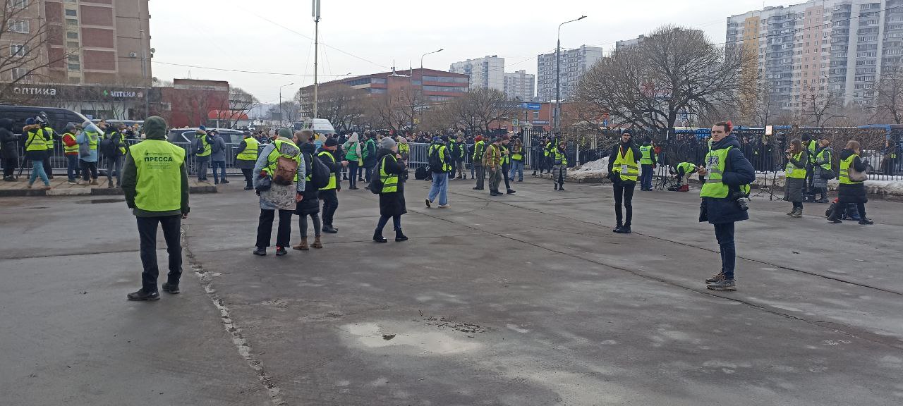 Церемония прощания с Навальным прошла в храме иконы "Утоли мои печали" в Марьино. На неё были приглашены только родственники политического активиста. У входа в храм в это время собралось около 5000-7000 человек. На месте событий побывал корреспондент "Первого русского" Альгис Микульскис.