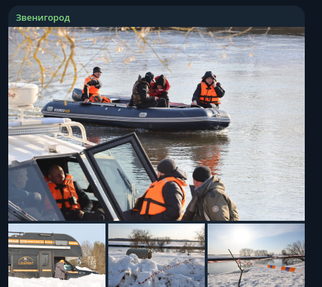 Поиски пропавших детей в Звенигороде дали результаты. Утром 13 марта в пресс-службе МЧС РФ сообщили: водолазы обнаружили тело второго ребёнка - 12-летнего Богдана, в семи километрах ниже по течению от места трагедии. За день до этого нашли первого мальчика - Ивана, в 800 метрах от места предполагаемого падения в воду. Всего с начала операции спасатели совершили десятки погружений, обследовали 16 тысяч квадратных метров акватории Москвы-реки и 59 километров береговой линии. Беспилотники работали в светлое время, ночью патрулирование вели аэролодки с прожекторами. Поиски 13-летней Алины продолжаются круглосуточно.