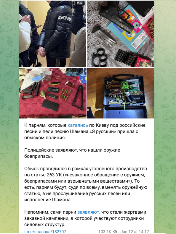 Парням будут, судя по всему, вменять оружейную статью, а не прослушивание русских песен или исполнение SHAMAN,