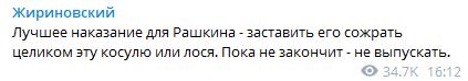 Лучшее наказание для Рашкина - заставить его сожрать целиком эту косулю или лося. Пока не закончит, не выпускать,