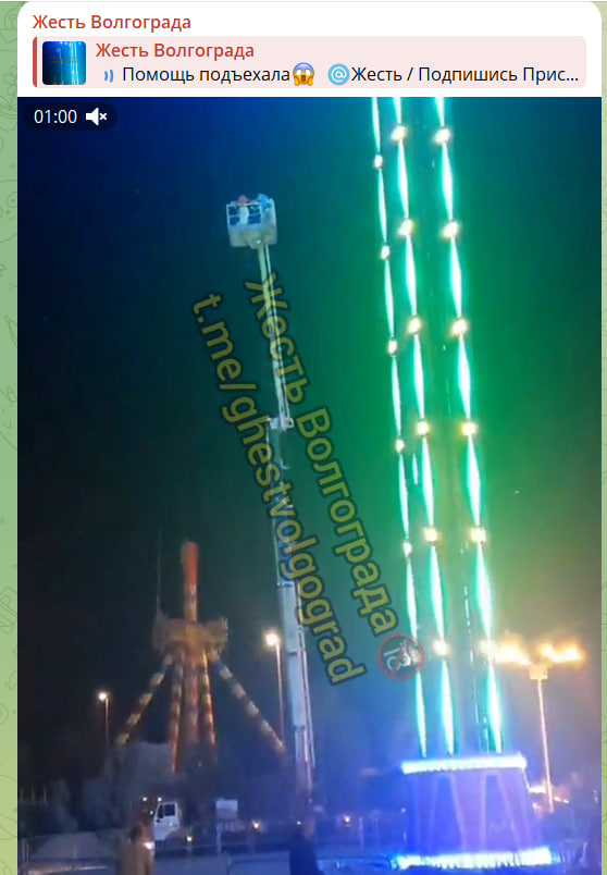 Вскоре после того, как выяснилось, что люди попали в беду, пресс-служба МЧС сообщила, что помощь уже подъехала. По данным СМИ, пишут авторы регионального TГ-канала "Жесть Волгограда", произошёл скачок напряжения, из-за чего аттракцион остановился на самом верху. Уточняется, что это самый высокий аттракцион Волгоградской области.
