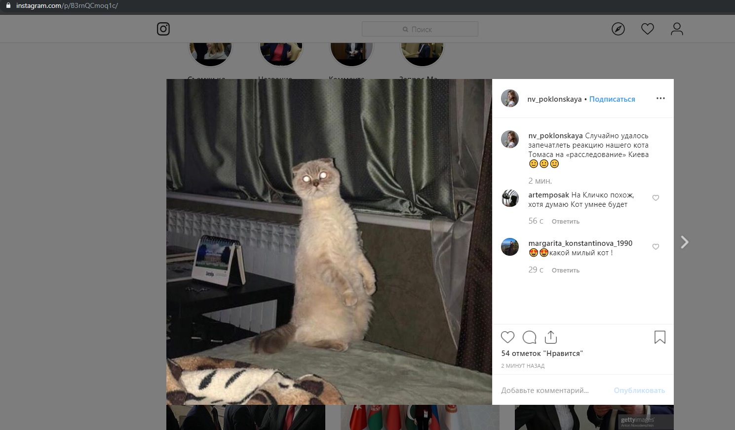 Почти сразу ее запись начала пополняться комментариями. Например, artemposak отметил, что кот похож на Кличко, хотя, "думаю, кот умнее будет". А margarita_konstantinova_1990 отметила обаяние питомца депутата.