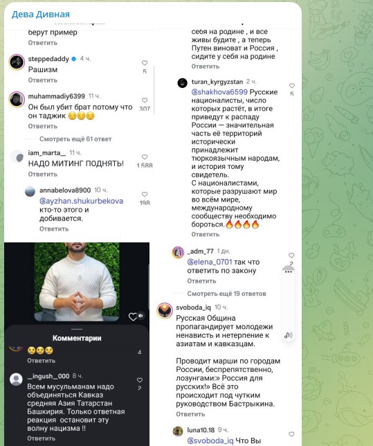 Тем временем в запрещённых соцсетях радикалы-исламисты выступают с преступными призывами по отношению к России и русскому народу. Кроме того, также звучат призывы выходить на митинги и требования к президенту России Владимиру Путину принести публичные извинения Таджикистану.