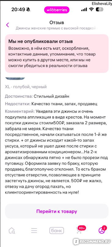 Скриншот пользователя с ником ElishevaLily на сайте irecommend