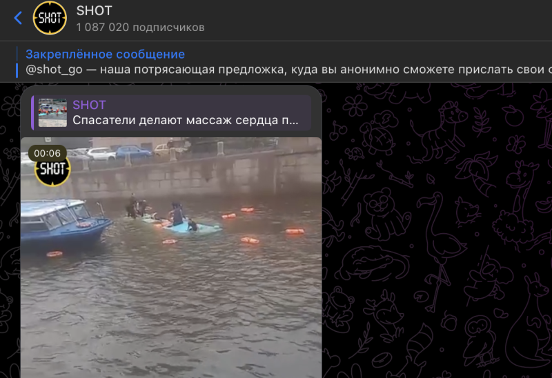 ДТП с участием каршеринговой машины произошло на Поцелуевом мосту. После столкновения случайные прохожие своими силами вызволяли людей из затонувшего транспорта. Когда на место прибыли экстренные службы, вытащенных людей пытались реанимировать, делая массаж сердца прямо на крыше автобуса.