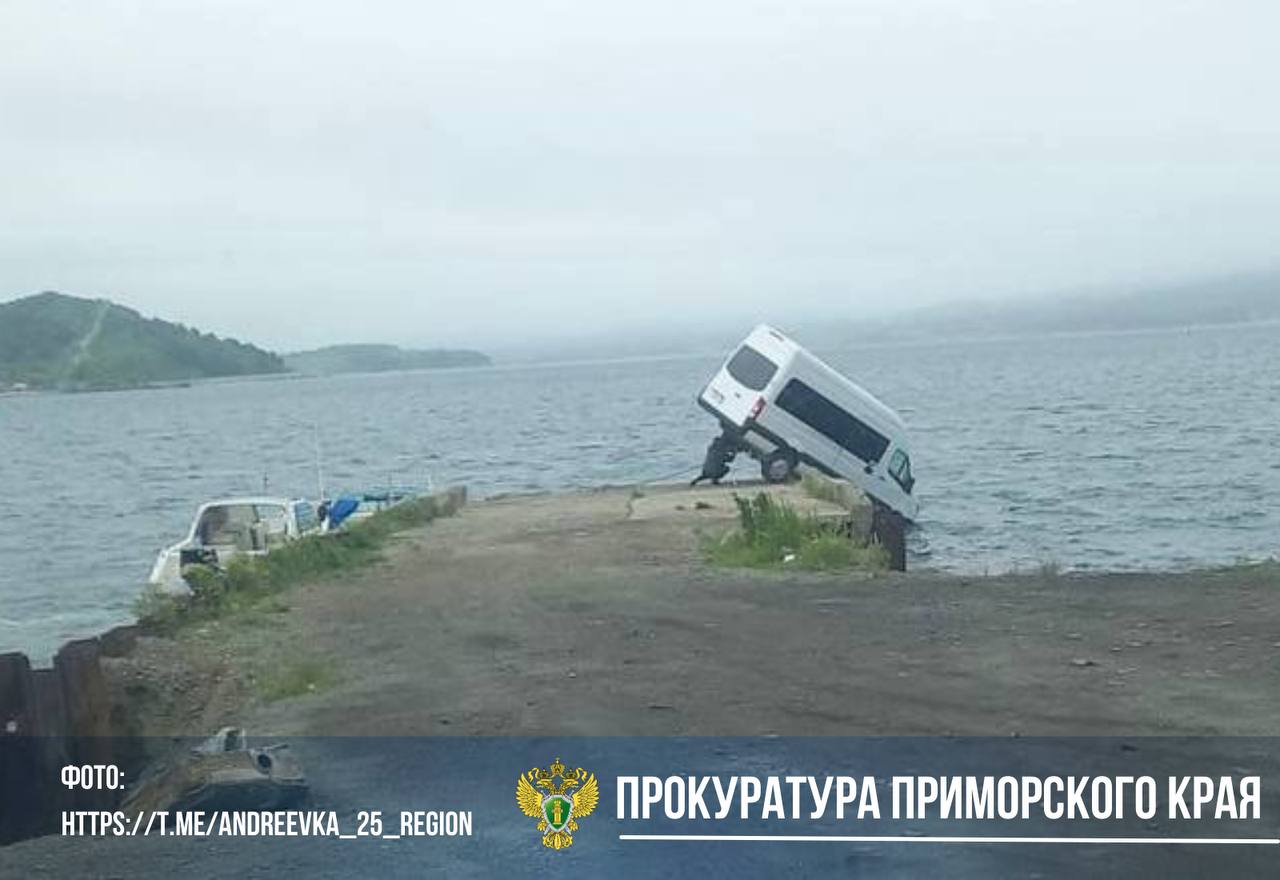 Микроавтобус с пассажирами съехал с пирса в Приморье и завис над водой. Впечатляющее фото показала прокуратура.