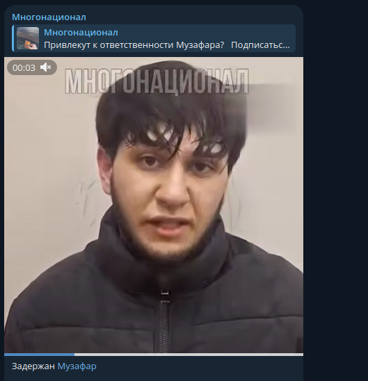 Позже Telegram-канал "Многонационал" сообщил, что Музафар был задержан. И вновь, уже при сотрудниках, он попытался оправдаться, заявив, что его слова были ошибкой и что подобное больше никогда не повторится.