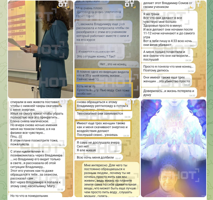 Неля также жаловалась на некоего "Владимира рептилоида" и его ученика Илью, которые занимались техномагией. Она утверждала, что во время сеансов из неё и ещё трёх женщин "скачивали энергию", причём "рептилоида" она сравнивала с насильниками и говорила, что они ещё хуже. После таких практик женщина чувствовала обезвоживание и полное отсутствие сил, не могла ничего делать. Предварительно, одним из её "наставников" является 56-летний шарлатан Владимир Сомов из Перми, называющий себя "целителем". Ранее он работал водителем в спортивной школе и занимался бизнесом.