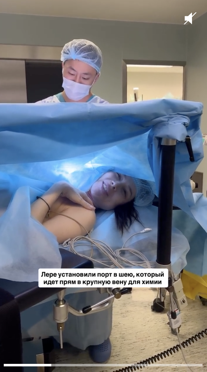 На других кадрах запечатлён момент установки порта — устройства, которое вводится в крупную вену для проведения химиотерапии. Процедура оказалась болезненной. "Резко нужно было", — обратилась Чекалина к медсестре. "Так тоже больно", — ответила та.