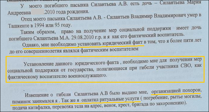 Истец считает: раз он оплатил похороны, это доказывает близкую родственную связь с погибшим Андреем. Скриншот документа, предоставлено Царьграду