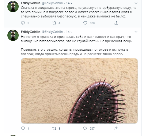 Пользователи твиттера делятся информацией о неизвестном ранее последствии COVID-19: врач-косметолог из Петербурга Эльмира Ханджян, переболевшая коронавирусом, рассказала о своей проблеме. Она написала, что перенесла болезнь легко и практически бессимптомно, но спустя полтора месяца после выздоровления заметила, что у неё начали выпадать волосы.