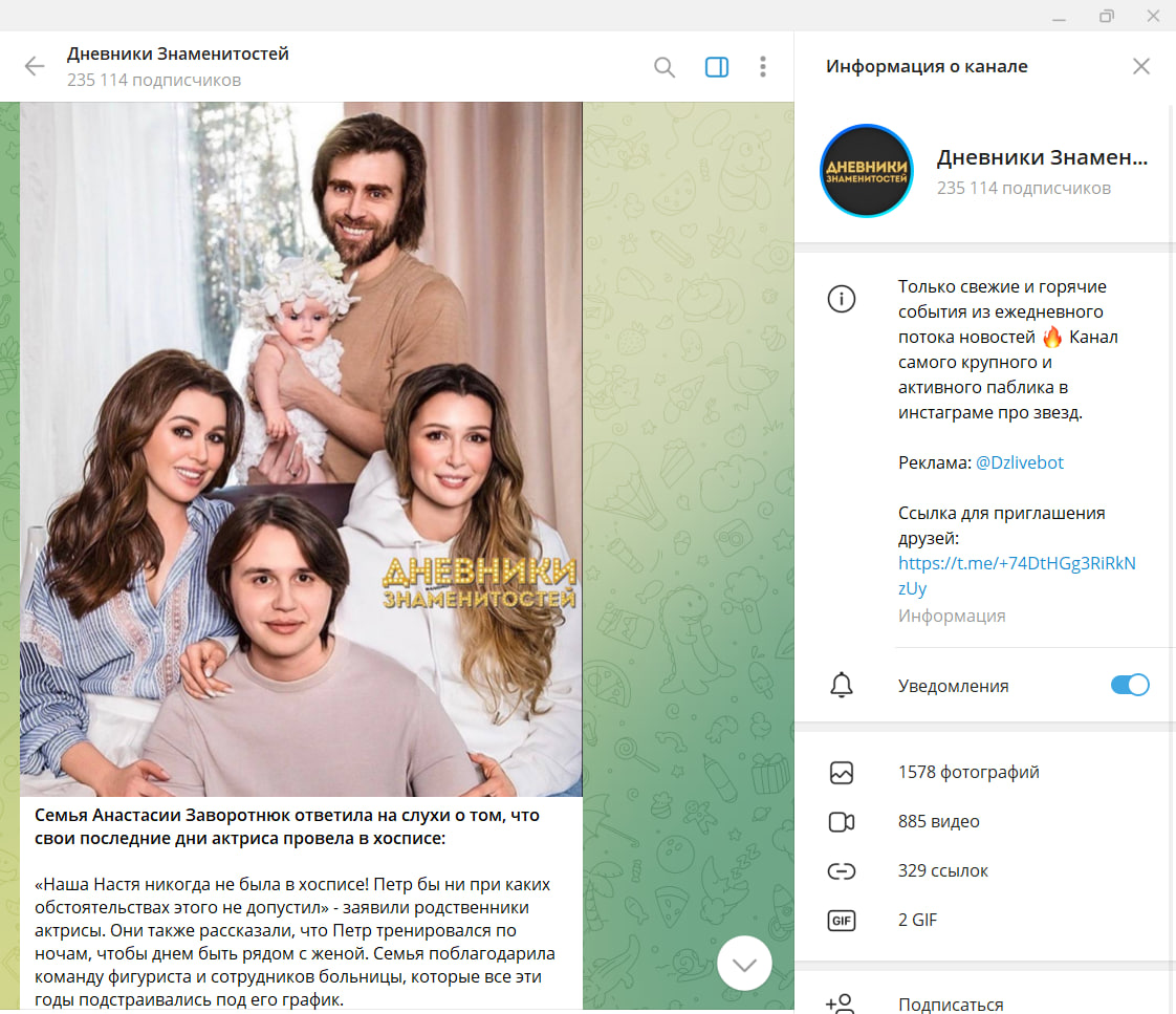 Скриншот: Tg-канал "Дневники знаменитостей"