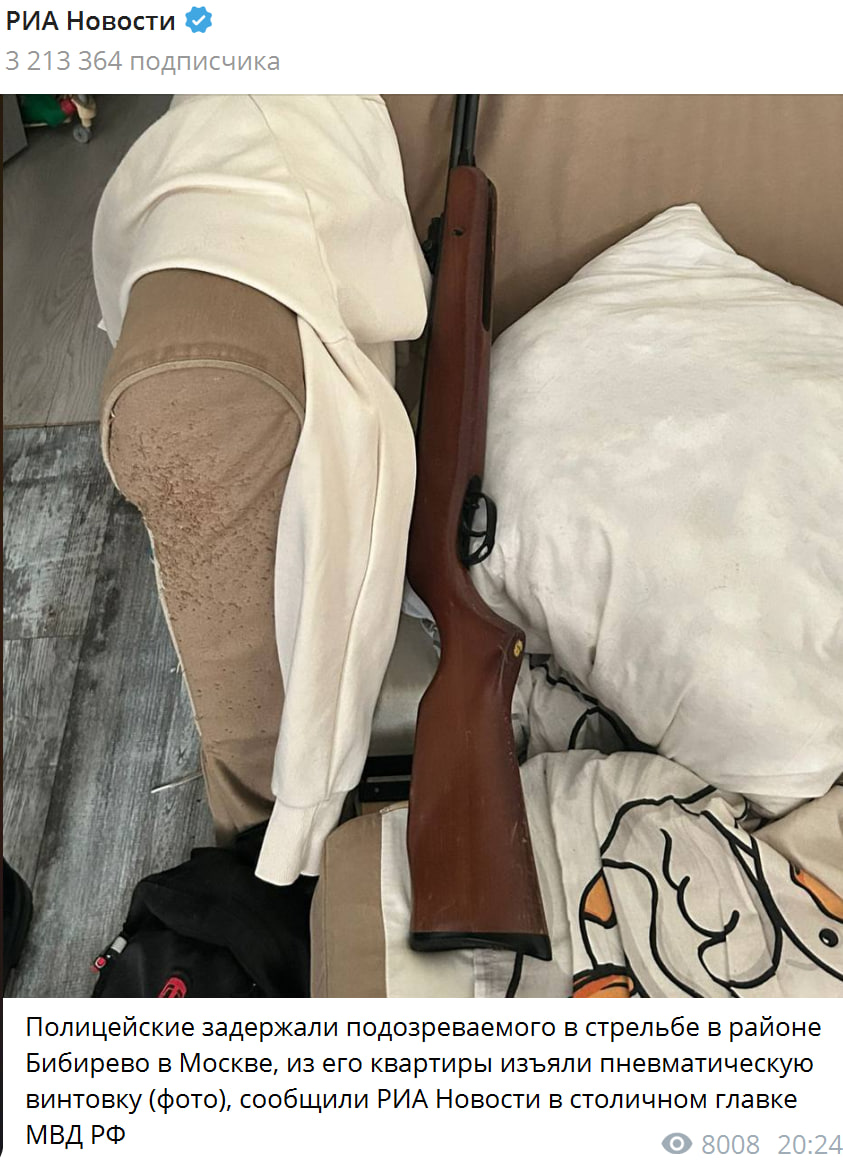 Пока мотивы злоумышленника неизвестны. Отмечается, что при обыске в квартире подозреваемого была обнаружена и изъята пневматическая винтовка.
