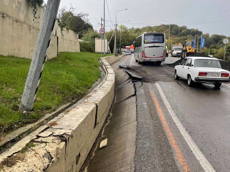Однако в направлении Дагомыса на дороге появляются новые трещины. На месте работает спецтехника. К ликвидации последствий привлечены 23 человека.