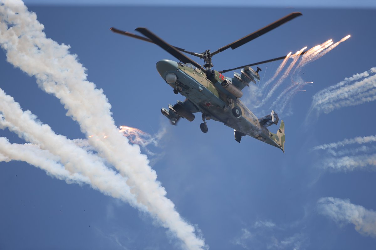 Русские перебросили боеспособные подразделения на защиту приграничья. Самолёты Су-25 и вертолёты Ка-52 атакуют вражеские колонны, уничтожая технику и живую силу.
