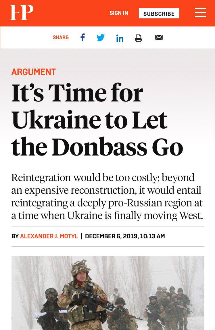 Свои взгляды Мотыль, который, вообще-то, всегда славился русофобскими взглядами, выразил на страницах Foreign Policy в материале под названием "Пришло время Украине отпустить Донбасс". Однако свой призыв "порадоваться потере Донбасса как подарку судьбы" историк объяснил достаточно необычно.