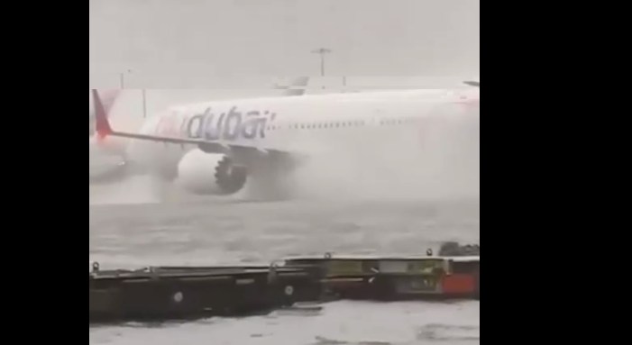 Ранее в Сети появились кадры, как самолёт в аэропорту Дубая едет к рулёжной дорожке, находясь почти по корпус в воде. За день на город выпало больше годовой нормы осадков.