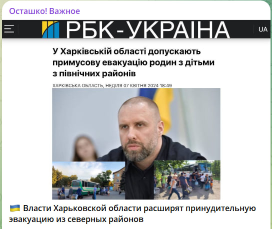 Харьковская ОВА расширит принудительную эвакуацию для северных районов, заявил глава ОВА Синегубов. Речь идёт о Харьковском и Богодуховском районах,