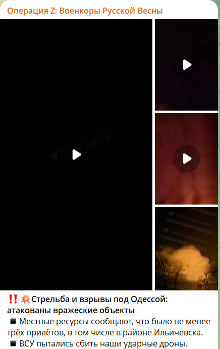 Первая воздушная тревога в Одессе прогремела после 21:00 по московскому времени. По данным украинского новостного сегмента, в сторону военной и критической инфраструктуры были выпущены ракеты. Известно о прилётах в районе Черноморска, Ильичёвска. Одновременно с этим был зафиксирован запуск КАР в сторону Кривого Рога и Днепропетровска. Русский новостной сегмент со ссылкой на свои источники подтвердил прилёты.