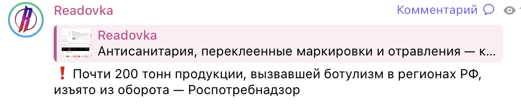 Сильнейшая вспышка ботулизма наблюдается в России. Причина в недобросовестных производителях готовой еды, не соблюдавших санитарные нормы. Как отмечают эксперты, во избежание заражения ботулизмом нужно обязательно обращать внимание на внешний вид и запах еды. При этом, вопреки расхожему мнению, повторно проварить или прожарить пищу не поможет, так как не все микробы при этом погибнут.
