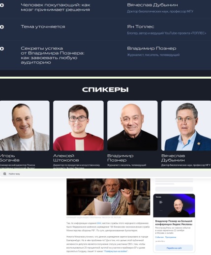 Но на этом "возращение" выступающего против России телеведущего не закончилось. Он также стал одним из четырёх спикеров Большой конференция "Яндекс Рекламы" для специалистов по продвижению в интернете. Более того, Познера сделали чуть ли не лицом рекламной компании мероприятия в интернете. Так что от этого предателя никуда не деться - он оккупировал не только экраны телевизоров, но и мониторы.