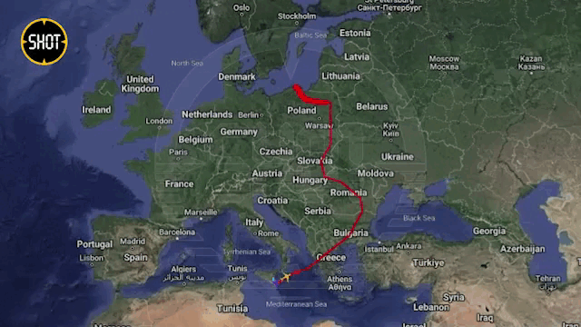 По данным телеграм-канала SHOT, американский дрон курсирует над территорией Польши - от деревни Любятово на севере страны до города Щучин.